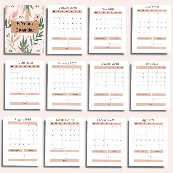 With this DFY 5 Year Calendar Collection, create calendars for up to 2030 in minutes. No need to manually create calendars, or update them for next year. Simply drop the calendars from the 5-years collection to your planner pages, and your dated planners are ready in minutes.